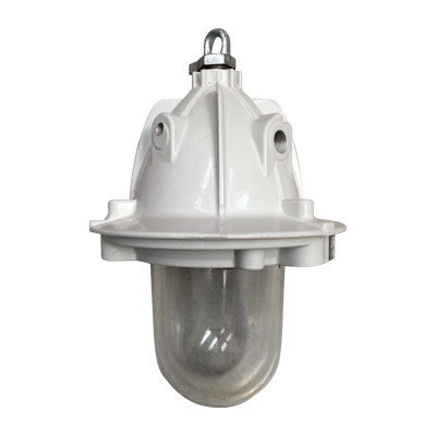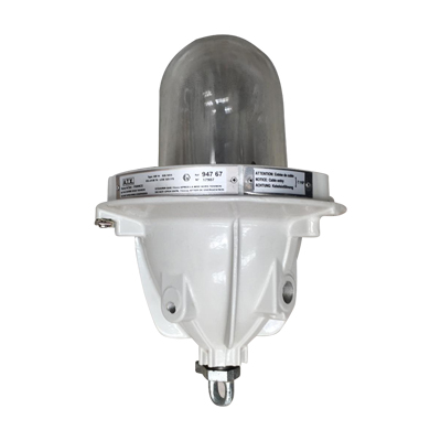 Cuerpo de aluminio, globo de vidrios resistente a los impactos.