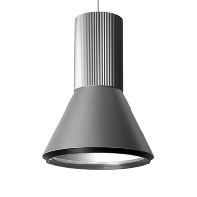 Luminaria con cuerpo extrusionado en aluminio pintado en poliéster color gris.
