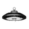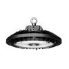 Campana colgante led tipo UFO 150W ( Potencia ajustable 150-120-100-80W) , atenuable , color negro , cuerpo de aluminio inyectado, con supresor de transientes 4KV, Fase y 6KV a tierra, lente de policarbonato, IK07, IP42, Ra70, 21.000 lm, 5.000°K, vida media 80.000Hrs. L-80,PF>0.92, 220V-240VAC, óptica ángulo abierto ajustable 40°, UGR 28.