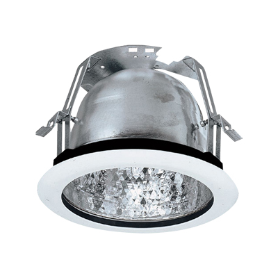 Foco empotrable de techo color blanco con cuerpo de termoplástico.